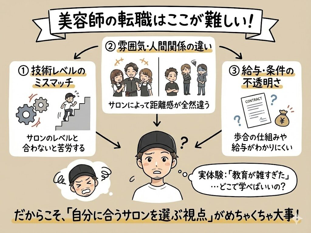 - 技術レベルとサロンのレベルが合わないと苦労する